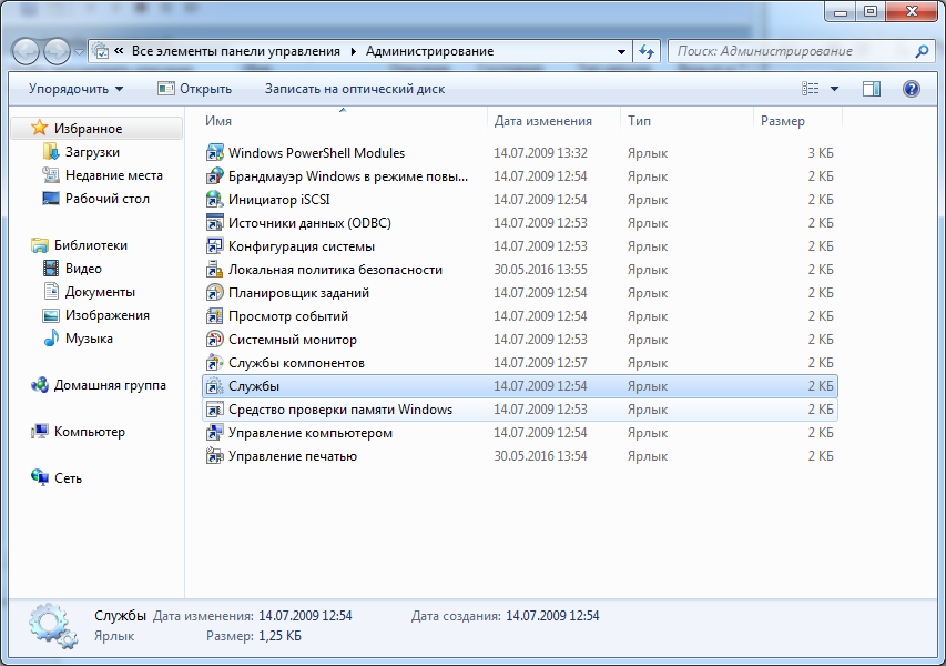 1. перейдите в меню пуск — панель управления — администрирование;