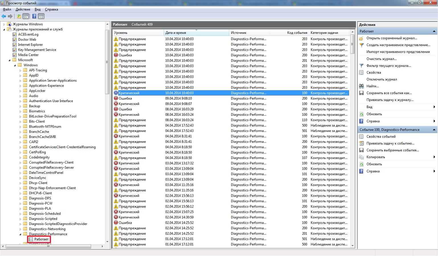 Журналы приложений и служб > Microsoft > Windows > Diagnostics-Perfomans