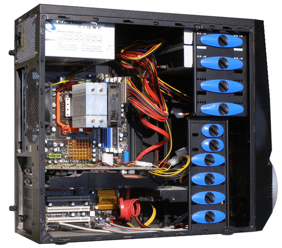 Корпус для ПК с водяным охлаждением должен обзавестись ватерблоком. Как показывает практика, хватает и одного, но лучше больше. Также внутри должен быть радиатор, помпа, шланги, фитинги и вода.