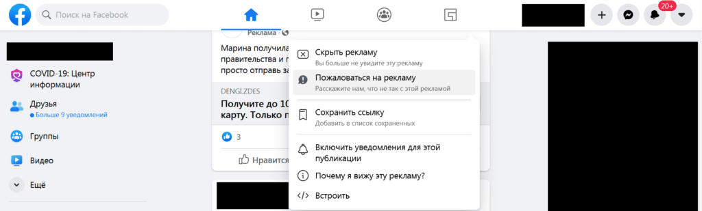 Как пожаловаться на мошенника в Фейсбуке