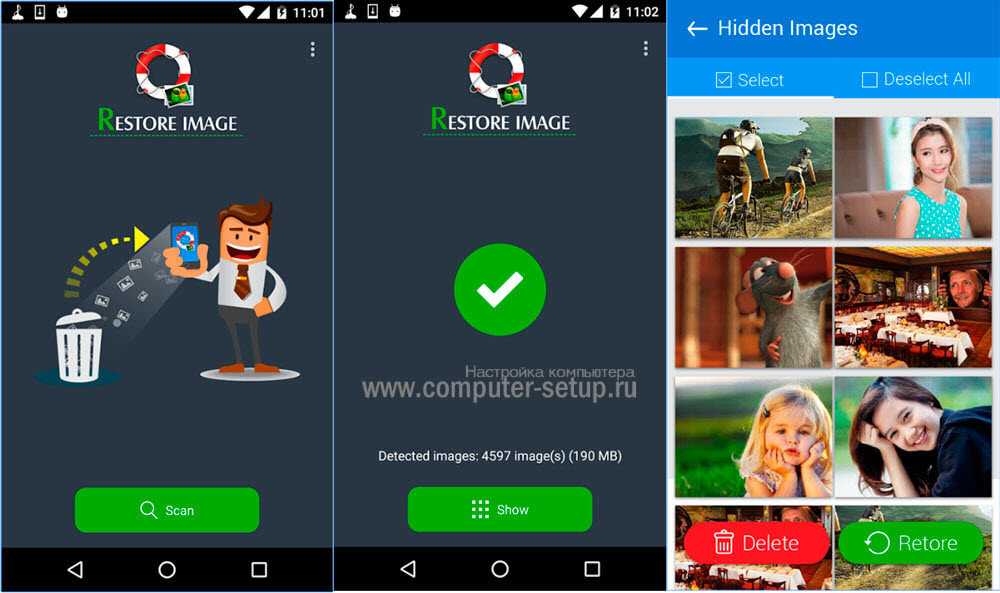 Воспользовавшись утилитой Restore Image для восстановления фото со смартфона или планшета, можно получить обратно стёртую информацию всего лишь трёх простых шагов: