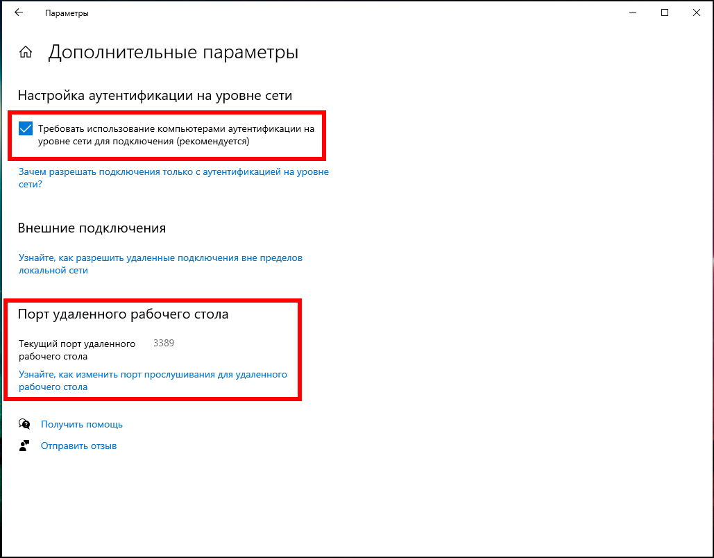 Кликнув «Дополнительные параметры» вы увидите настройки для изменения стандартного порта RDP и других свойств подключения.