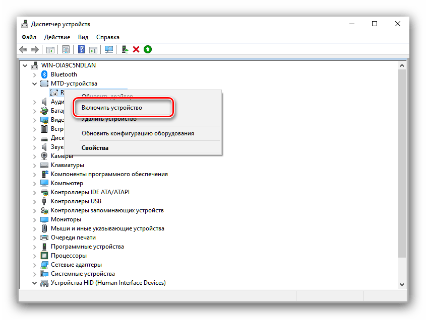 Подождите несколько секунд, затем вызовите контекстное меню устройства снова и воспользуйтесь пунктом «Включить».