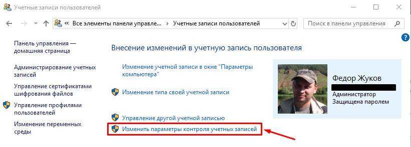 Вход в параметры контроля учетных записей