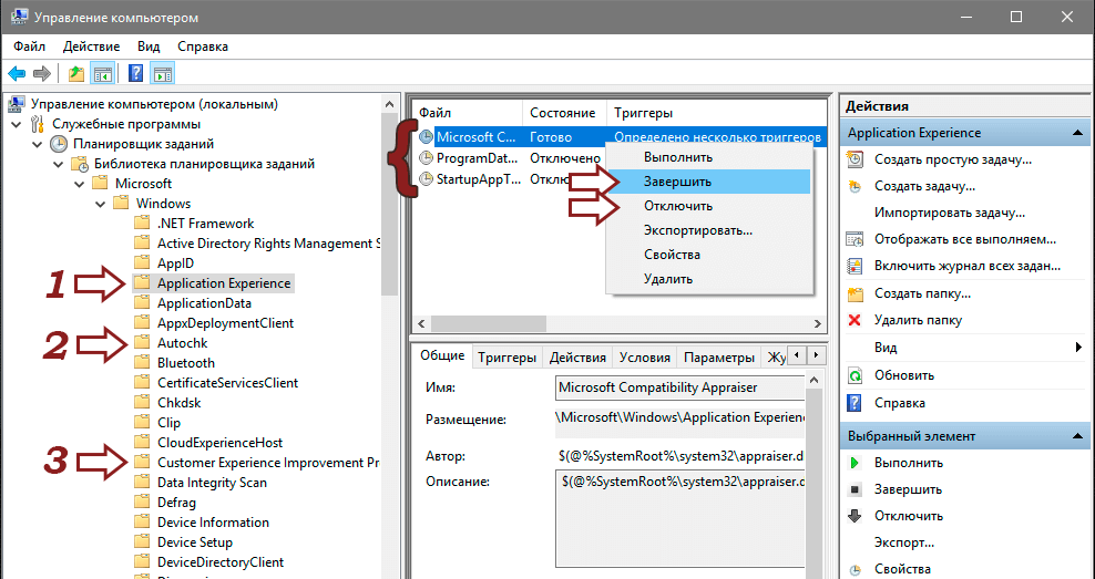 Отключение слежения в Windows 10 DWS из планировщика задач: