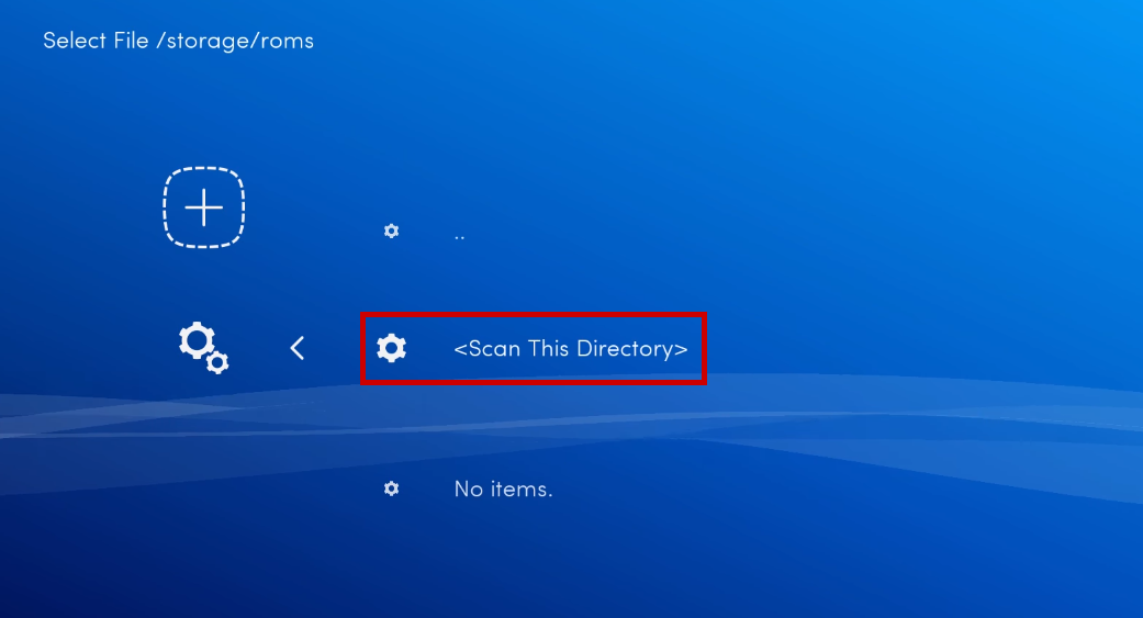 После копирования перейдите на Lakka на последнюю вкладку со значком плюс и выберите опцию «Сканировать этот каталог». Lakka проверит папку «Roms» в поисках новых игр, которые мы там ставим.