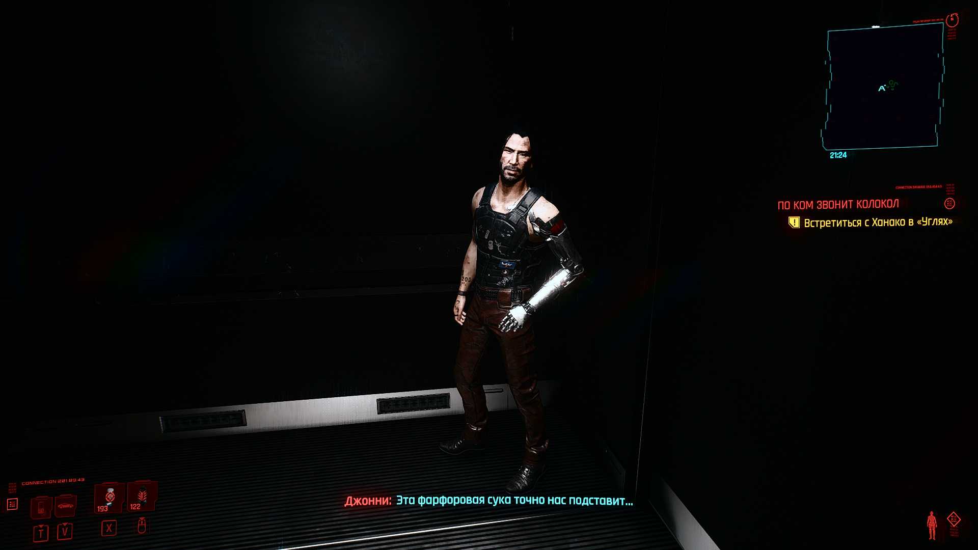 Когда окажетесь в автомобиле вместе с Джеки, то познакомитесь с искусственным интеллектом по имени Деламейн. С этим персонажем будут связаны некоторые побочные задания. Прибыв в гостиницу, подождите, пока Джеки пройдет через охранную рамку. В этот момент администратор спросит, зачем вы принесли в отель военную технику. Быстро ответьте [Мы торгуем оружием]. На ресепшене также нужно вовремя среагировать и выбрать вариант [Не надо, не беспокойтесь].