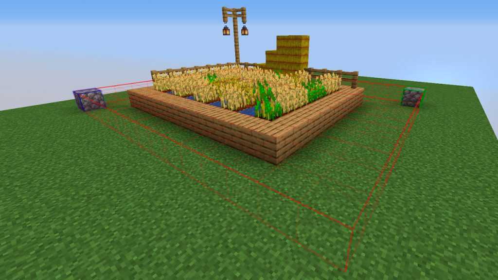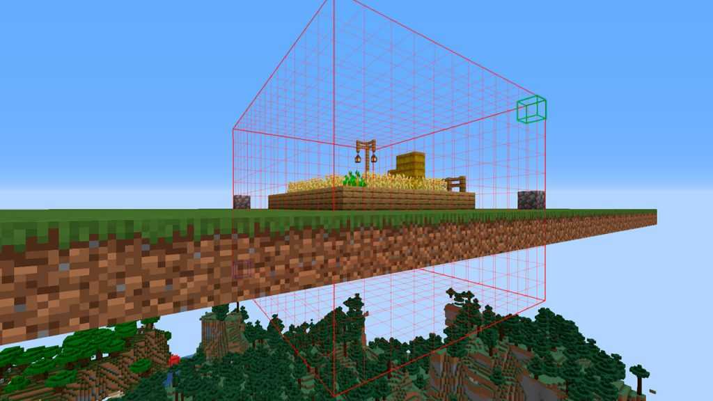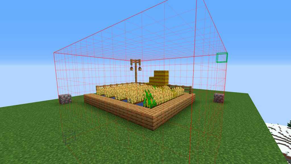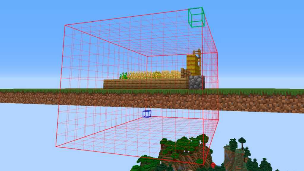 Верхняя часть нашей фермы не находится в зоне привата, как и нижняя. Но это легко исправить. Мы можем расширить границы нашего привата, введя команды //expand 5 up (расширит границу привата вверх на 5 блоков) и //expand 5 down (расширит границу привата на 5 блоков вниз). В Вашем случае количество блоков для расширения границ ВВЕРХ и ВНИЗ может отличаться от приведенного примера, чаще всего игроки используют значение: 20 блоков вверх и вниз. В результате границы нашего будущего привата изменятся, и теперь он будет больше похож на куб, а так же будет захватывать верхнюю часть нашей фермы и её нижнюю часть: