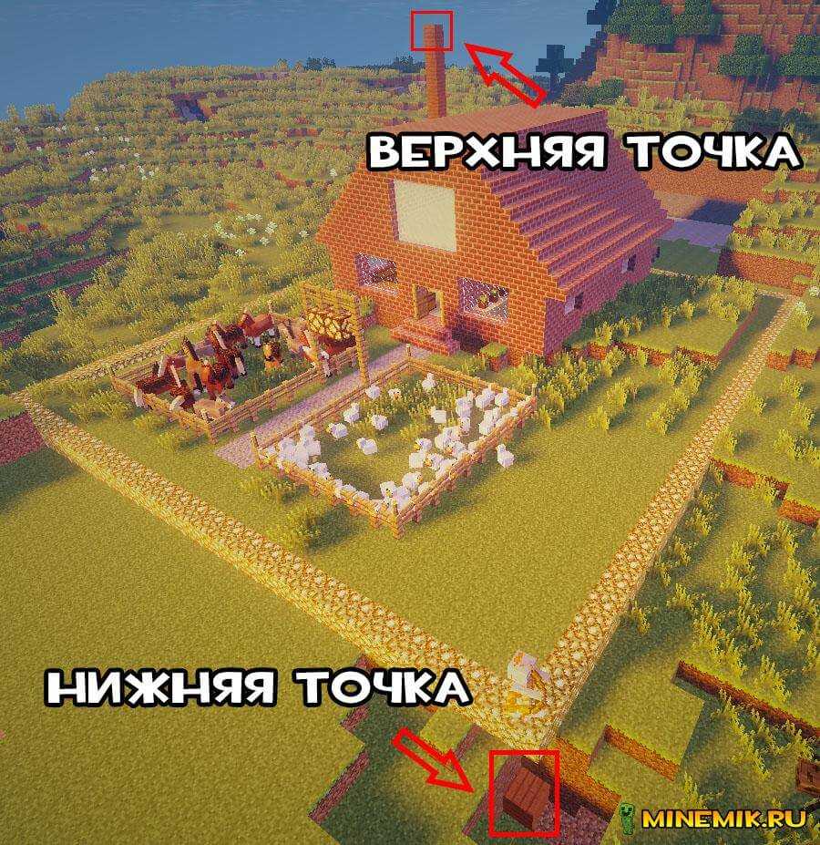 - Когда вы помечаете самую верхнюю и самую нижнюю точки — делайте небольшой запас. Я прокапываю на 3 блока вниз от самой нижней точки дома и поднимаюсь на 3 блока вверх от самой верхней точки моей постройки.
