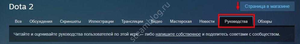 Переходим ко второму этапу ответа на вопрос, как создать руководство Стим! На открывшейся странице ищем вкладку с одноименным названием и кликаем по ней.
