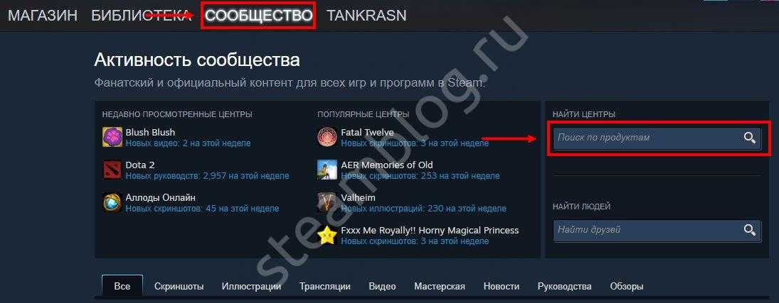 Первый этап – поиск нужного центра сообщества, он есть у каждой игры. Это делается следующим образом:
