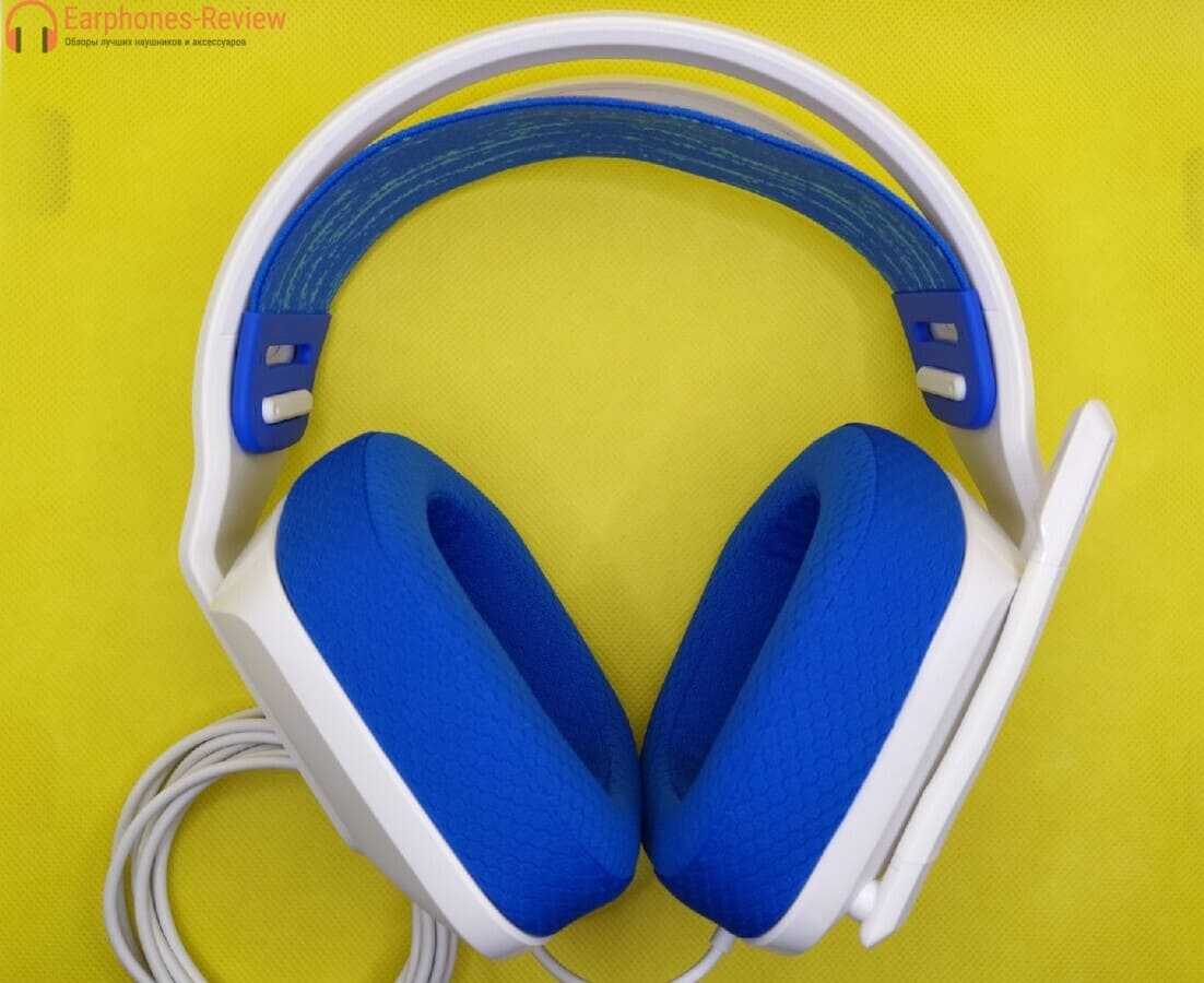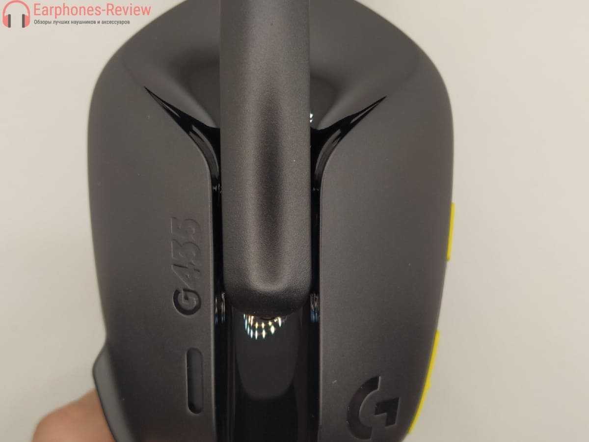 При обзоре мне достался матово-черный с неоново-желтыми вставками на проводке и кнопках G435. Но также доступны комбинации кремового/сиреневого и синего/малинового цветов. Общий дизайн привлекателен, с изгибами и углами наушников, которые выглядят намного более стильно, чем ранние варианты Logitech.