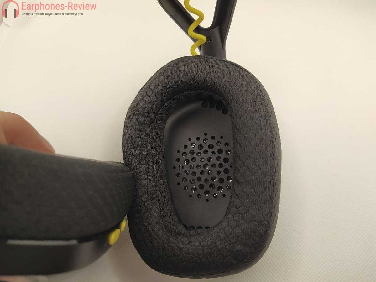 Амбушюры обтянуты тканью из пеноматериала с эффектом памяти, которые имеют хорошую набивку и никогда не нагреваются. Чашки наушников не поворачиваются, чтобы лежать на груди, но из-за отсутствия выступающего микрофона и маленького размера, подбородок не так сильно цепляется при повороте головы.