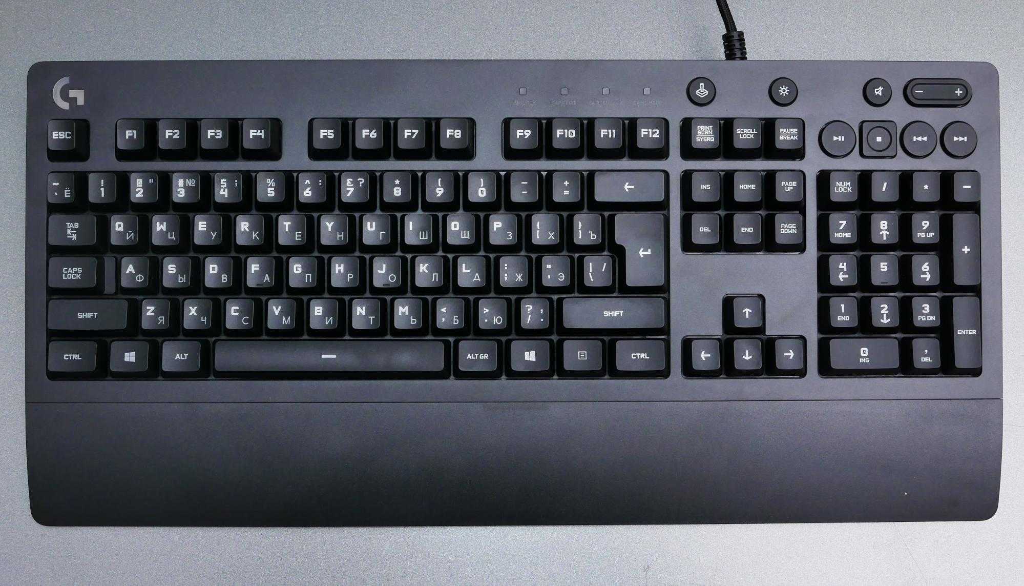 Каждая клавиша подсвечивается. Но не отдельно, как у механических аналогов — вся площадь клавиатуры разделена на пять зон подсветки. Есть также индикаторы Num Lock, Caps Lock, Scroll Lock и Game Mode — они особенно яркие и хорошо заметные.