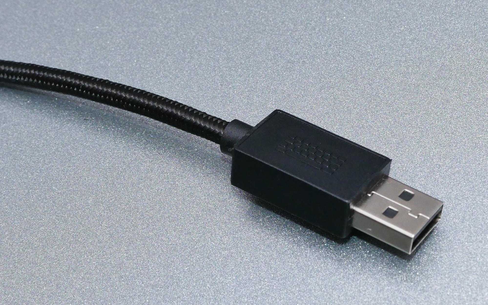 Кабель не слишком длинный (1.8 м), но его хватит для большинства сетапов. У него есть тканевая оплетка, а также защита от перегибов. Сам по себе он достаточно жесткий, но клавиатуру вы двигаете не так часто, поэтому это не проблема.