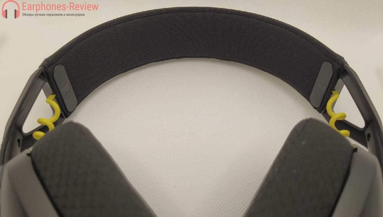 Но в целом, выглядит гарнитура оукей. Внутри чашечек находятся тканевые перегородки с буквами L/R. Угадайте, как говорится, зачем они нужны. Амбушюры, кстати, довольно плотно прижимаются к голове за счёт всё той же мощнейшей алюминиевой несущей части.
