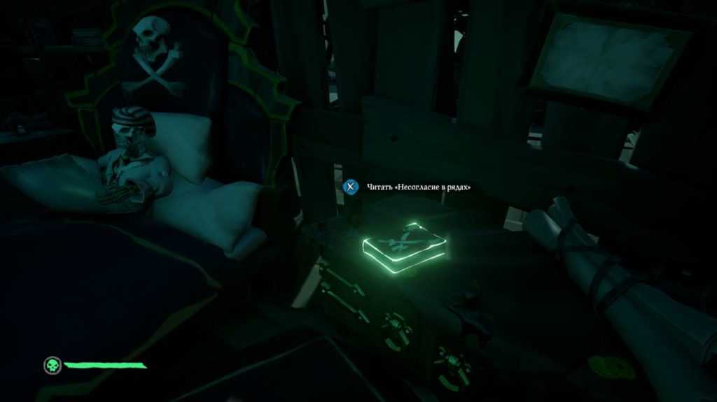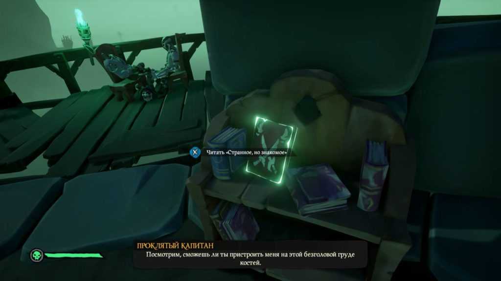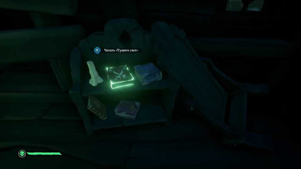 В капитанской каюте Проклятого капитана справа на книжной полке