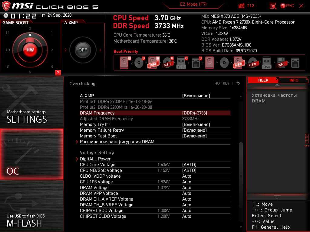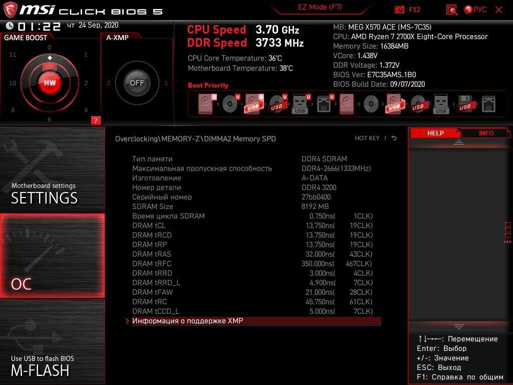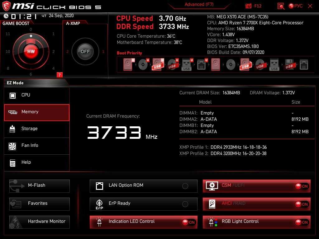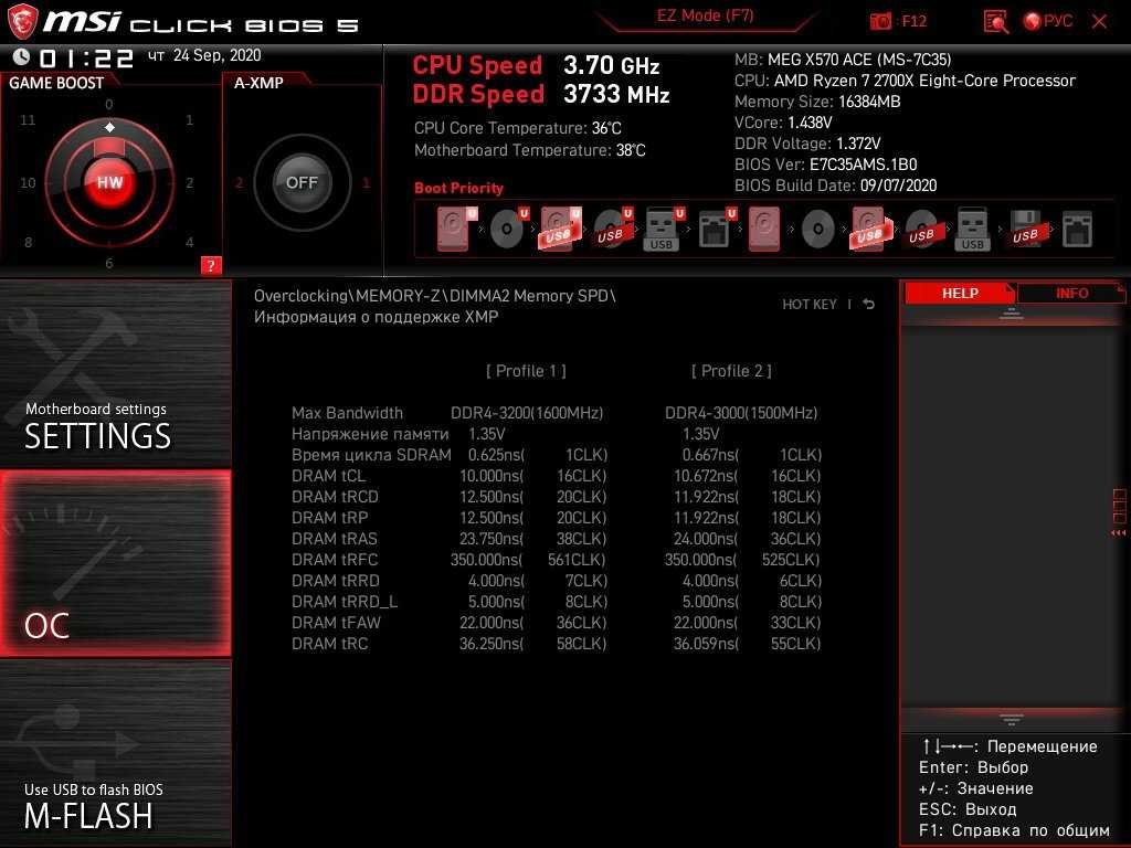 | Материнская плата | MSI MEG X570 ACE(BIOS: 7C35v1B от 07.09.2020) |