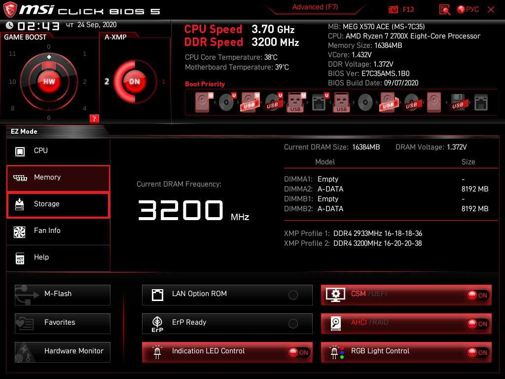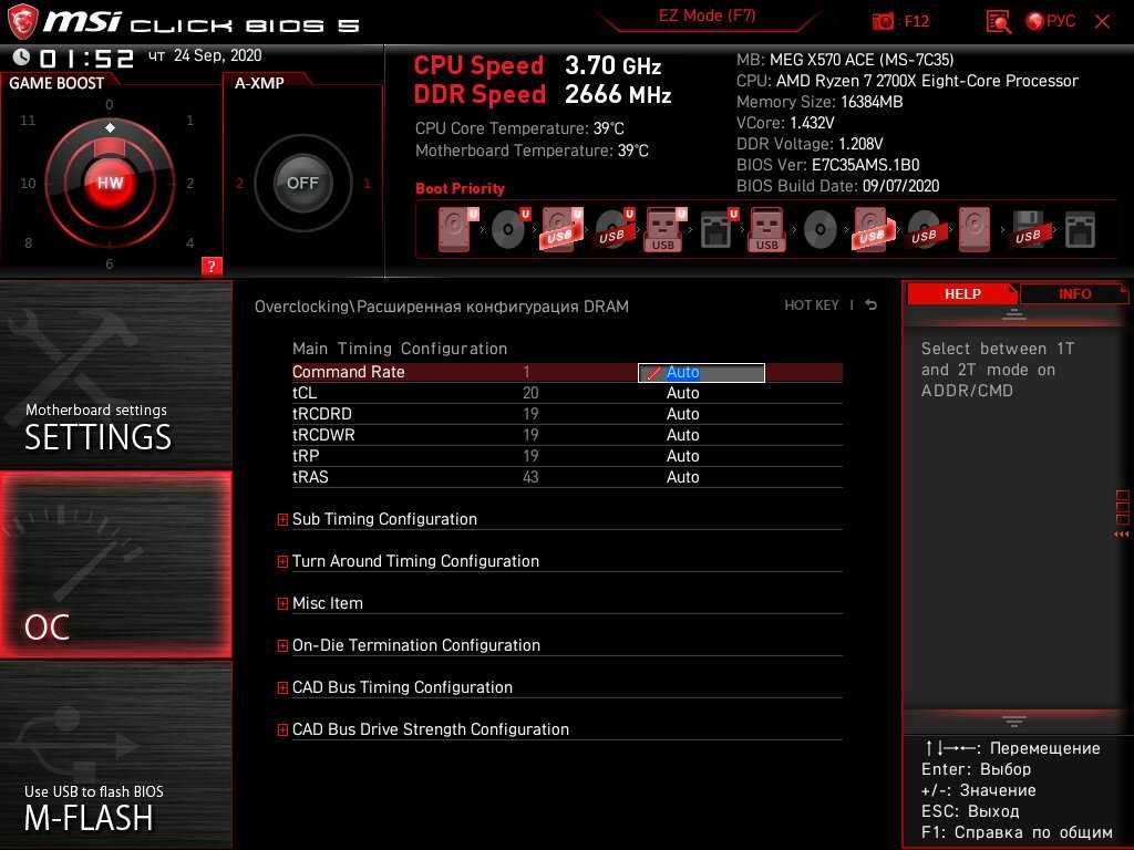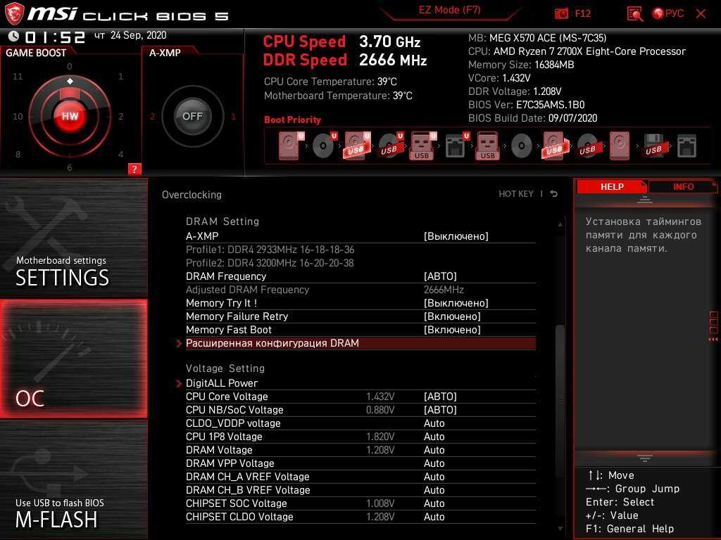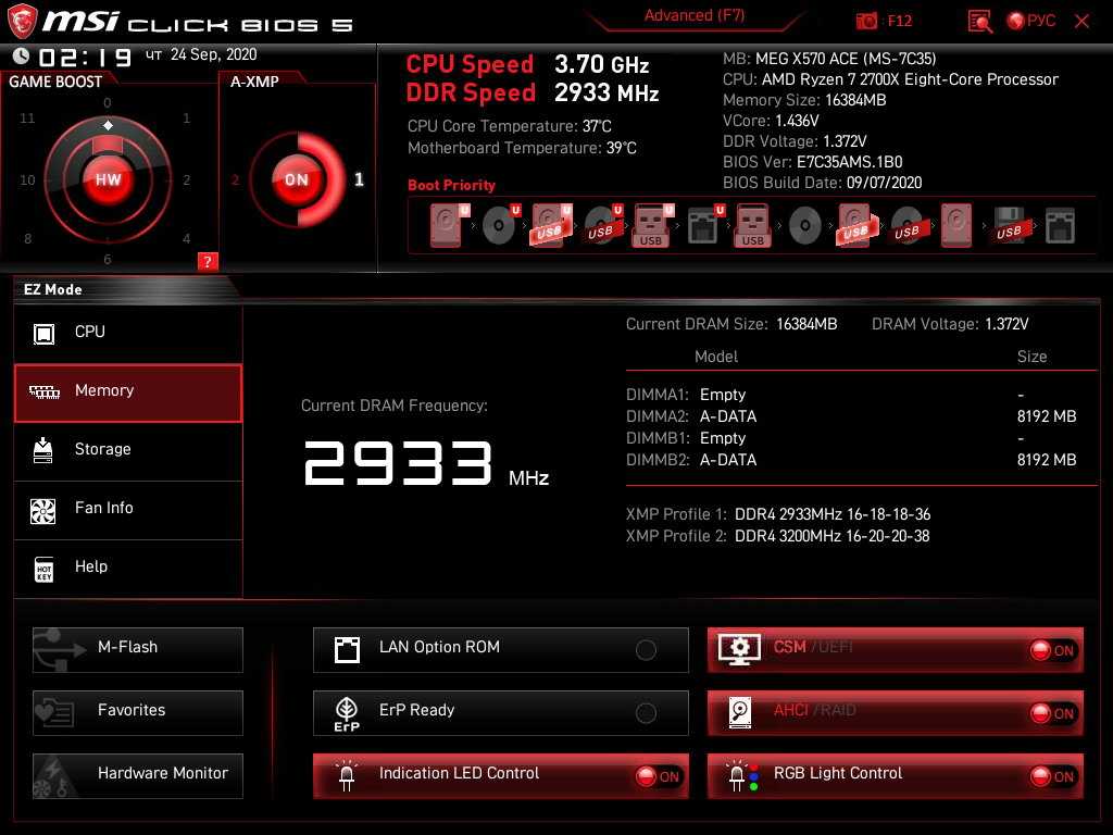 | Материнская плата | MSI MEG X570 ACE(BIOS: 7C35v1B от 07.09.2020) |