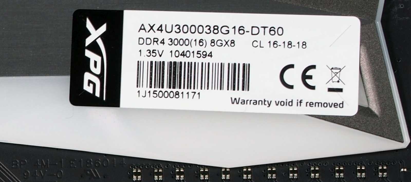 Тестируемый комплект ADATA XPG SPECTRIX D60G DDR4-3200 (AX4U320038G16A-DT60) на 16 ГБ (два модуля оперативной памяти DDR4 по 8 ГБ) имеет заводскую настройку двух XMP 2.0-профилей, которые в силу большой совместимости, как со старыми материнскими платами и процессорами, так и с новинками, наиболее часто используются в игровых домашних ПК на 2998 МГц и 3200 МГц.
