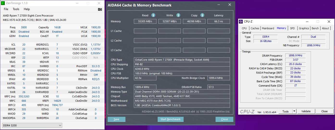 В принципе, XMP-профиль данного комплекта памяти в 3600 МГц является наибольшей эффективной частотой для этой платформы. Но реальный потолок для Infinity Fabric составляет 1933 МГц. И нам удалось запустить память на частоте 3800 МГц с делителем 1:1. На больших частотах с данным делителем память не запускалась.