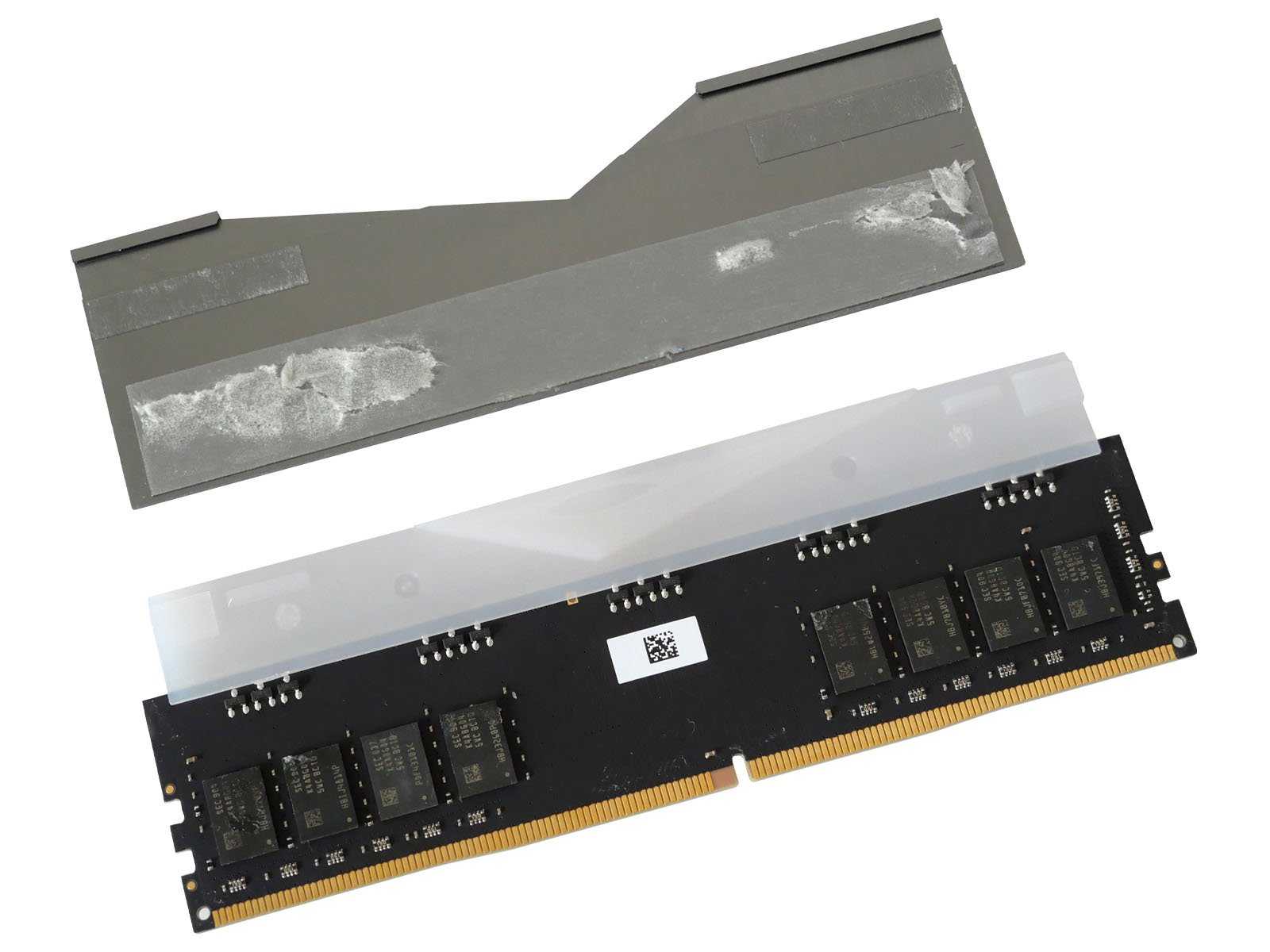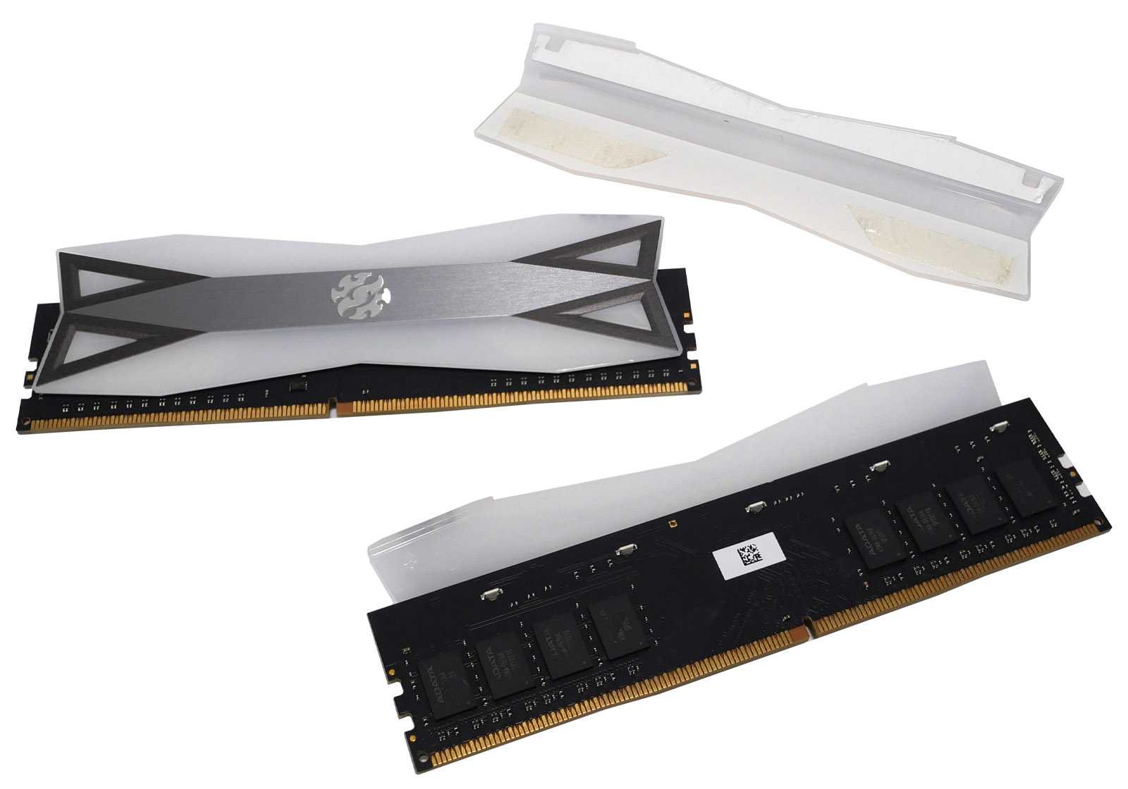 Это подтверждает и разбор одного из модулей памяти XPG Spectrix D60G DDR4-3000. Снимаются пластиковые рассеиватели без особого труда после непродолжительного нагрева феном. Они крепятся на клейкие силиконовые термопрокладки, через которые и происходит передача тепла от чипов памяти.