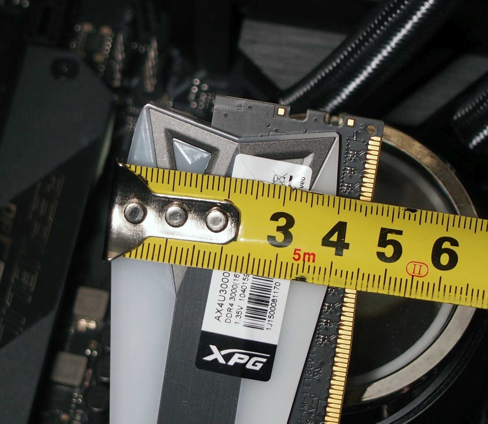 В самой высокой точке XPG Spectrix D60G DDR4-3000 возвышается над материнской платой на расстоянии в 48 мм. Это позволяет выражать некие опасения по совместимости с некоторыми моделями воздушных охладителей для центрального процессора.
