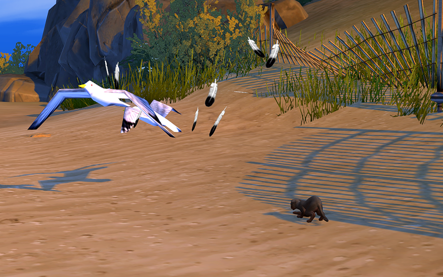 Ну и самое главное, ради чего стоит поставить дополнение к себе на компьютер – это возможность взаимодействовать питомцем с окружающим миром. К примеру, собака может бегать, садиться, ложиться, спать, быть игривой, охотиться и даже сходить в туалет. Все зависит от того, где она находится, и какие качества характера в ней преобладают. Кошки умеют ходить вокруг объекта, играться, лениться, ухаживать за собой, искать предметы, орать, спать ну и некоторые другие действия. Если захочется позабавиться, то можно выйти на задний двор и попробовать атаковать стаю голубей. Результат не всегда успешный, но разогнать пернатых коту удастся точно.