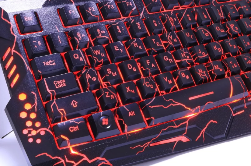 Геймерская клавиатура может иметь два вида подсветки – по контуру клавиш, по контуру и символов, которые расположены на кнопках. Такое решение дает возможность печатать даже в полной темноте. Помимо этого, в некоторых моделях предусмотрена возможность задания любого оттенка свечения, выбрать особые визуальные эффекты при запуске разных игр и действий в них.