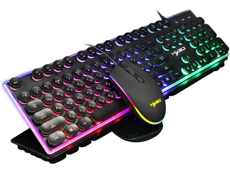 Механическая полноразмерная клавиатура от компании HP порадует красными переключателями, что гарантируют тихие нажатия. У нее есть удобная подставка для запястий, которую при необходимости можно снять. Модель с RGB подсветкой, разъемом для наушников и настраиваемым углом наклона посредством выдвижных ножек. Подключение осуществляется через USB и дополнительный кабель 3,5 (если планируется подключать к клавиатуре наушники).