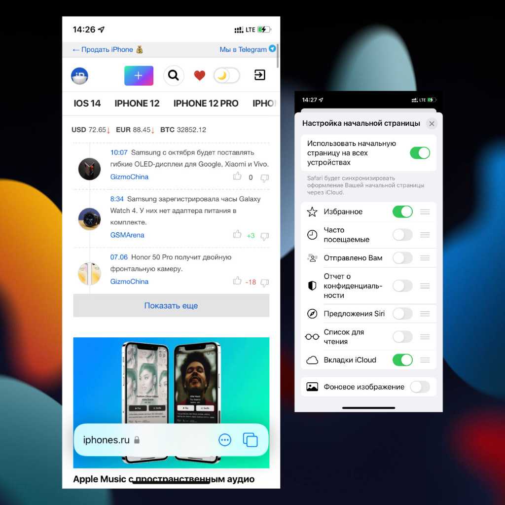 В iOS 15 существенно изменился браузер Safari. Для начала стоит отметить, что он получил новую стартовую страницу с гибкой настройкой, с которой многие уже успели познакомиться по 14 версии приложения из macOS. Её параметры синхронизируются.
