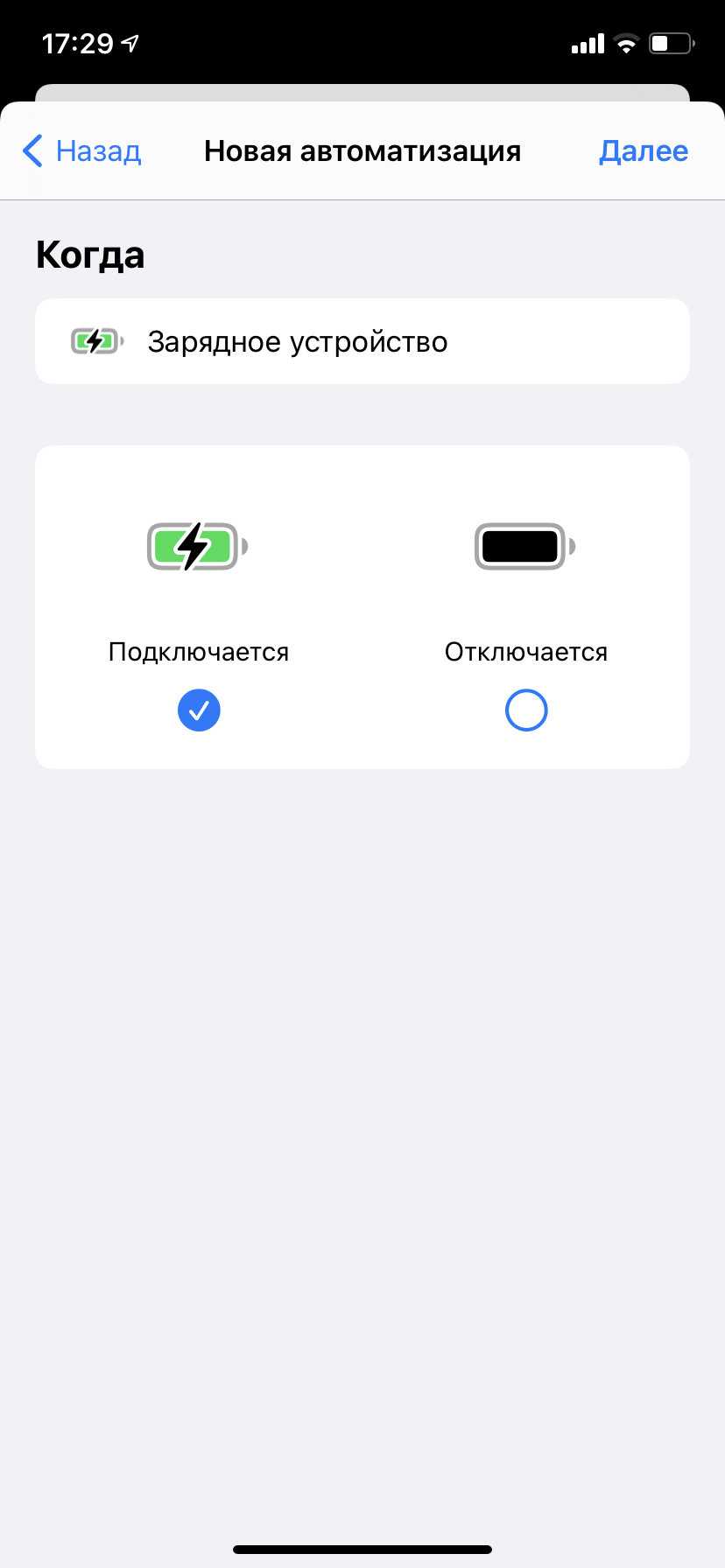- Новые действия для автоматизаций в «Командах». Можно, например, поставить выключение света, запуск будильника и режим «Не беспокоить» на подключение устройства к зарядке. Я заряжаю телефон только ночью, поэтому подобный сценарий очень даже кстати, и никакая NFC-метка не нужна;