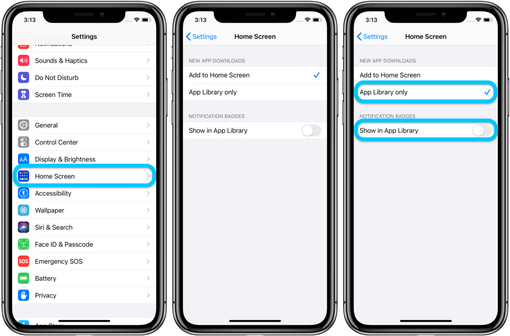 Если вы хотите, чтобы новые загрузки отображались только в библиотеке приложений iPhone, а не появлялись на домашнем экране или странице приложения, перейдите в «Настройки»> «Главный экран» и нажмите «Только библиотека приложений».