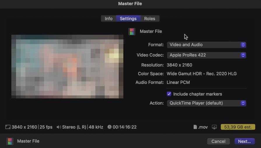 А еще вам нужно экспортировать HDR контент, чтобы затем залить на YouTube. Программа Final Cut не позволяет сделать это в кодек H.264 и предлагает ProRes. В итоге на выходе размер файла получаем просто огромный — 50 Гб и более.