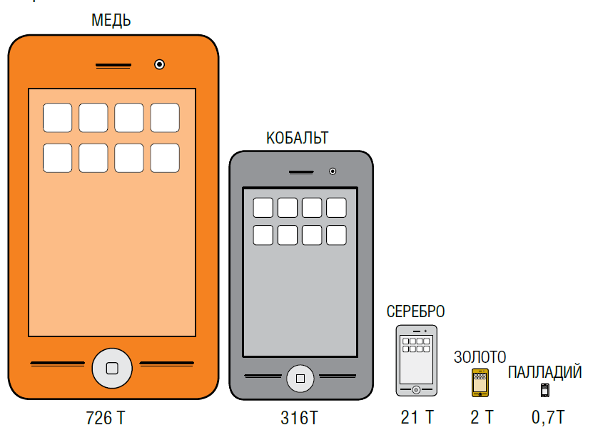 Если вы задумываетесь о собственной небольшой электронной золотоносной шахте, микроскопические количества золота в каждом смартфоне заставят вас подумать. Но как только вы начинаете мыслить в большом масштабе, все становится гораздо более привлекательным: в одном миллионе мобильных телефонов можно найти 16 тонн меди, 350 килограммов серебра, 34 килограмма золота и 15 килограммов палладия.
