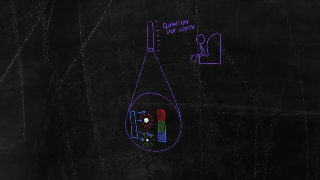 Изначально разработчики хотели взять OLED-матрицу и модернизировать её. Они планировали использовать квантовые точки в качестве эмиссионного слоя. Но главной целью учёных было создание полноценного телевизора, работающего на Quantum dot, поэтому они отказались от первоначальной идеи, выбрав фотолюминисцентную технологию. Сейчас электроэмиссионные дисплеи существуют только в виде тестовых образцов. В промышленных масштабах выпускаются жидкокристаллические экраны с фотолюминисцентными квантовыми точками в качестве подсветки.