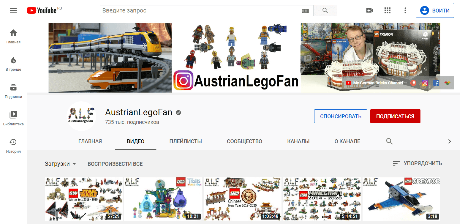 YouTube канал ALF про LEGO работает на детскую аудиторию и взрослую, где зрители канала наблюдают за сборкой конструкторов.