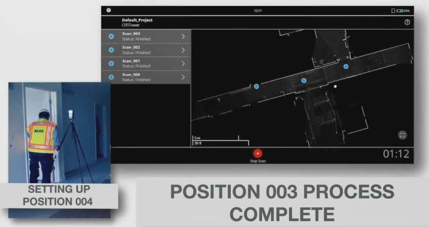 В результате мы получаем 2D-план и сшитое облако точек. Фактически для работы достаточно одного специалиста: он оставляет ноутбук на столе в помещении и уходит сканировать. Когда сканирование выполнено, готовое облако точек можно просмотреть в ПО. Также доступна дополнительная программа SCENE WebShare Cloud, благодаря которой вы можете поделиться своими проектами с коллегами.