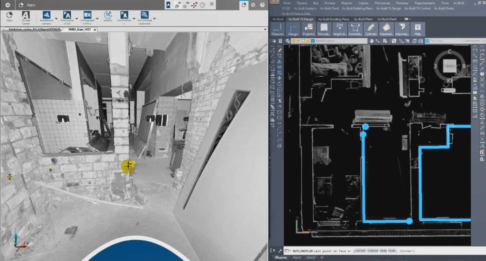 Один из этапов работы в FARO As-Built