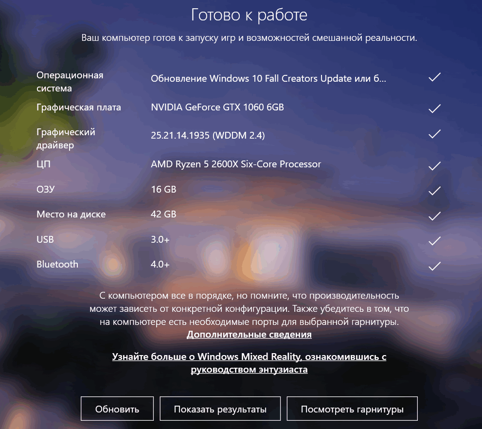 В случае с WMR я не нашел требований на оф.сайте, однако, думаю не сильно будут отличаться, к тому же — там есть чекер. Про них и поговорим дальше.