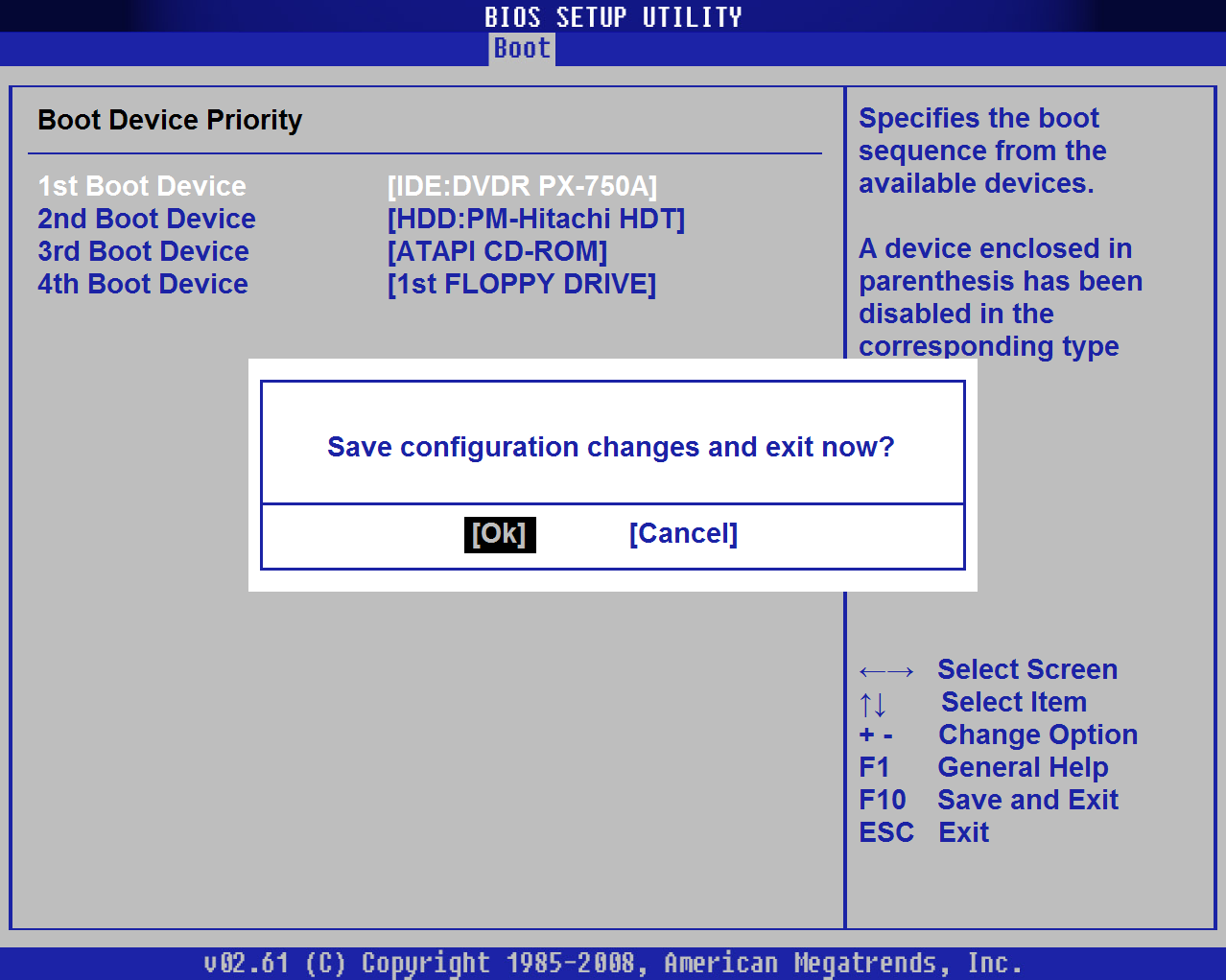 - Exit — Выход. Можно записать изменения и выйти из bios или оставить все как было (по умолчанию).